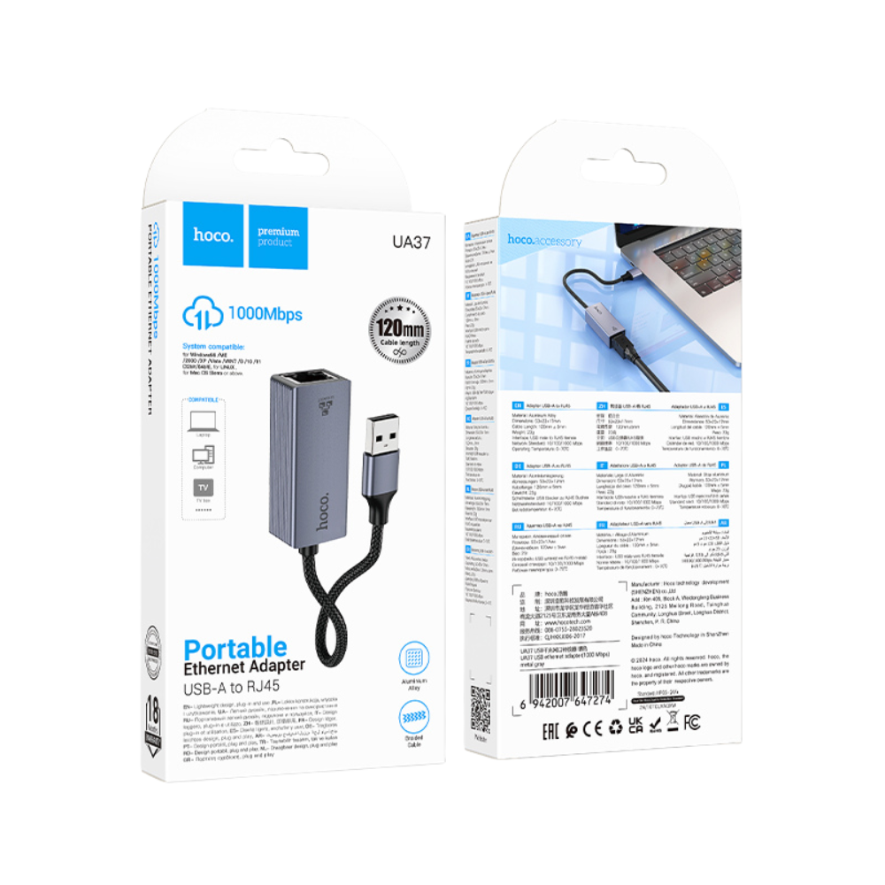 ADAPTADOR HOCO UA37 USB A RJ45 1000 MBPS