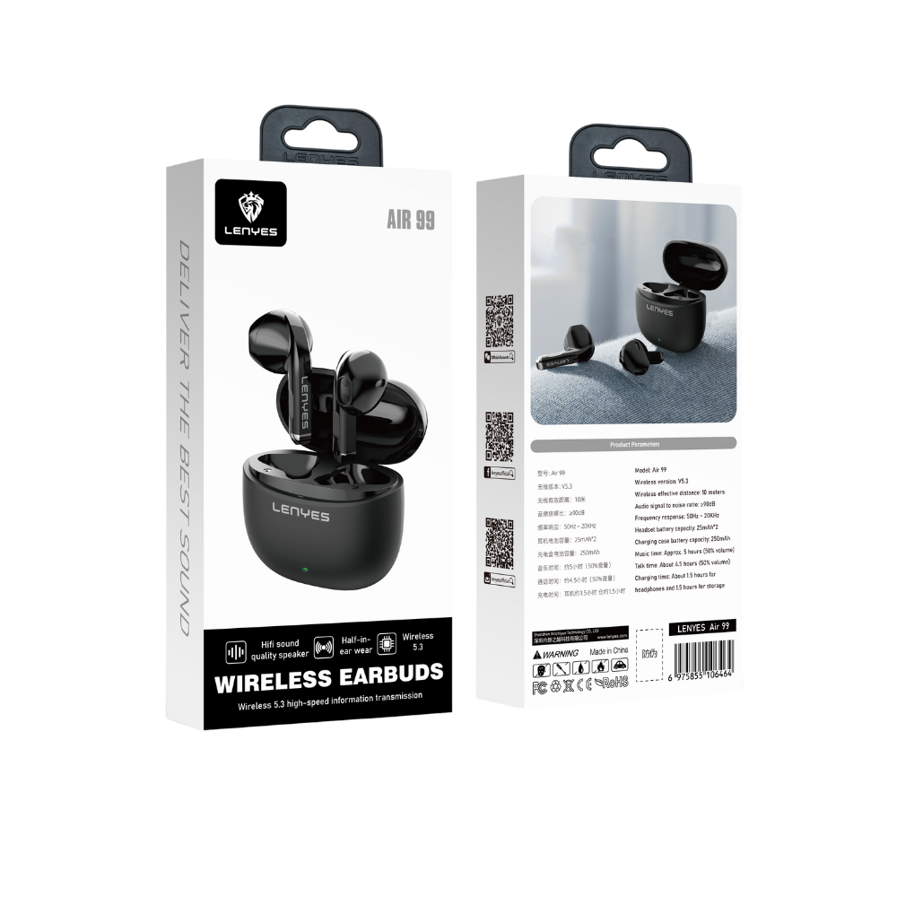 Disfruta tu música sin límites con los Lenyes Air 99, los audífonos Bluetooth que combinan sonido nítido, batería de larga duración y un diseño cómodo para todo el día.