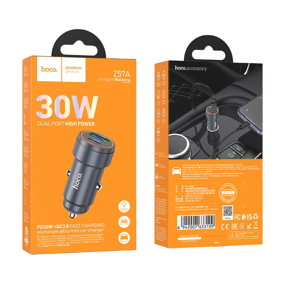 CARGADOR DE AUTOMOVIL HOCO Z57A USB-C PD 30 W + USB QC3.0