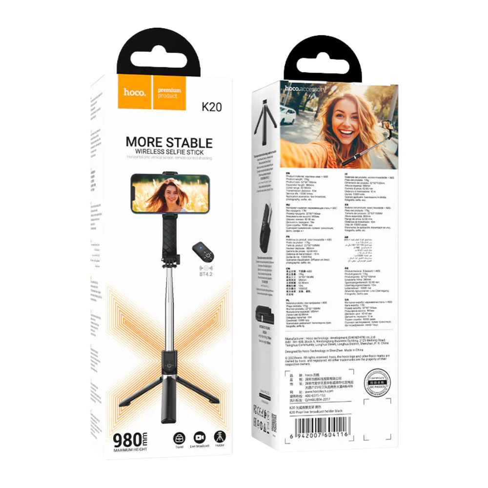 Hoco K20 – Bastón Selfie + Trípode con Control Bluetooth para Smartphones